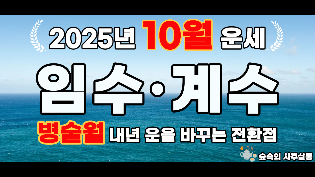 10월 병술월은 2026년 병오년과의 연관성이 매우 크기 때문에 이번 10월이 내년 운을 미리 경험하는 예고편이다라고 말씀을 드렸었죠? 결국 여러분이 이 시기를 어떻게 보내느냐에 따라 내년의 방향성이 결정된다 해도 과언은 아닙니다. 오늘은 나 자신이 원하는 것을 위해 나아가고자 열심히 노를 저어 오셨을 우리 수일간에 대해 말씀을 드리고자 합니다. 내가 원하는 방향, 살아가고 싶은 방향으로 바쁘게 노력해 오신 분들은 드디어 결실이 보이는 때이지만 그전에 반드시 넘어야 할 산도 있다는 것도 잘 알고 계셔야 합니다. 우리 임수, 계수 일간 분들이 이런 10월 병술월을 최고의 운으로 만들 수 있도록, 핵심 전략과 주의사항까지 모두 정리해 드릴 테니까 끝까지 집중해 주시기 바랍니다